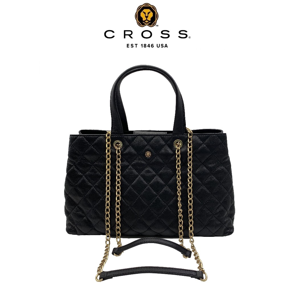 【CROSS】經典 小牛皮 菱格紋 手提 斜背包 (黑色) 限量1折 全新 專櫃 展示品