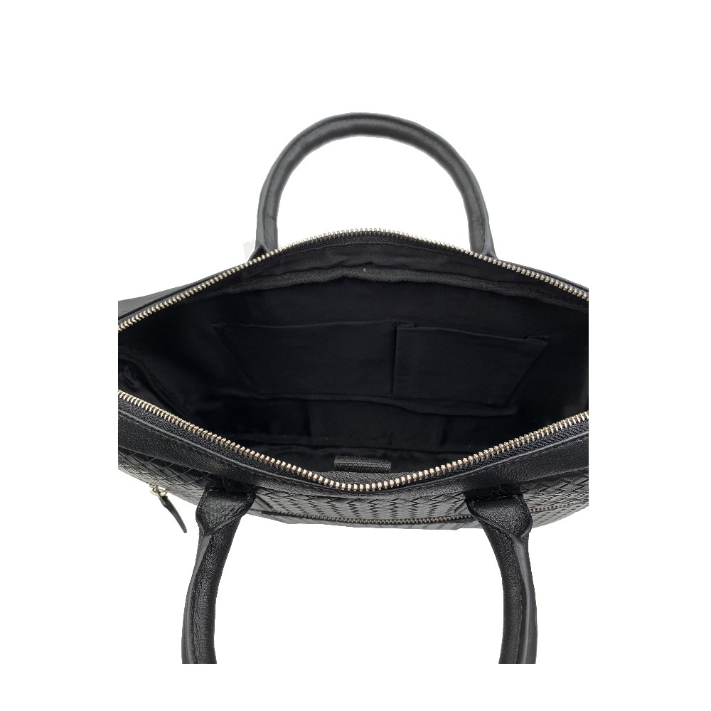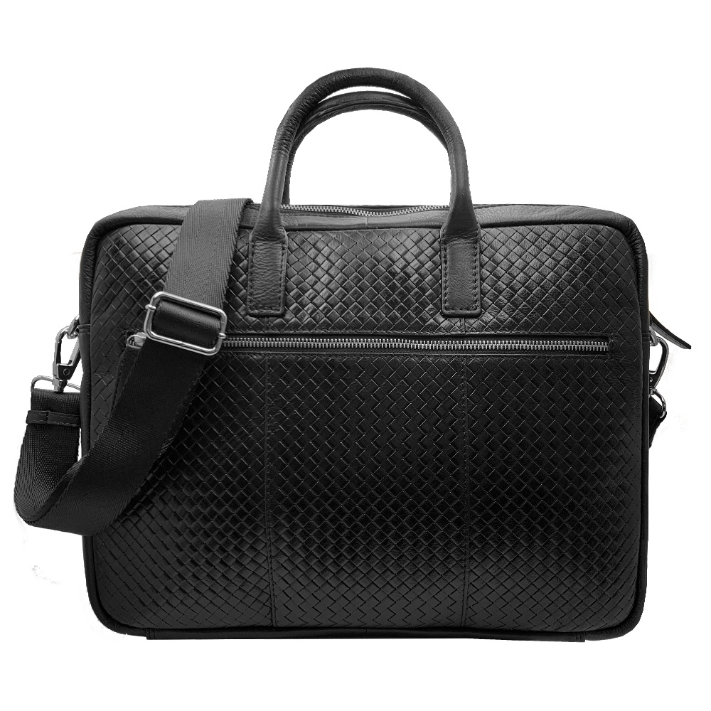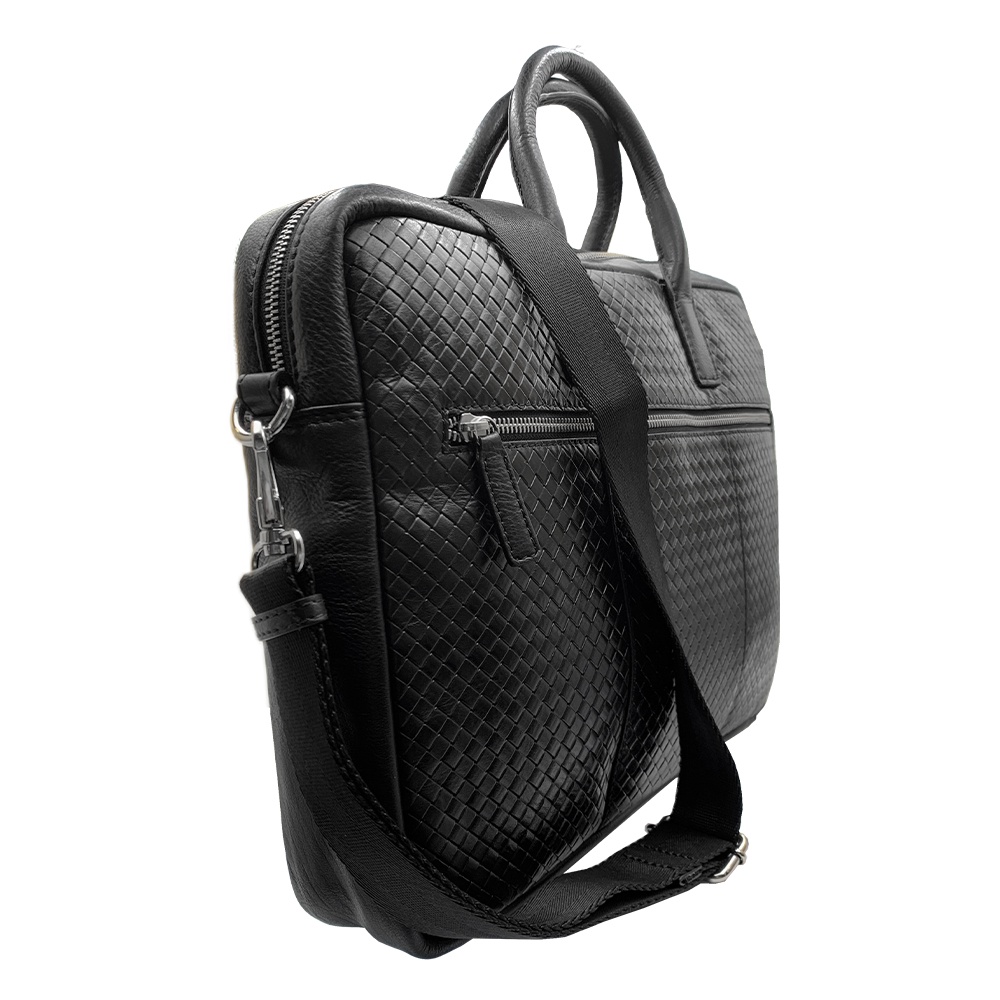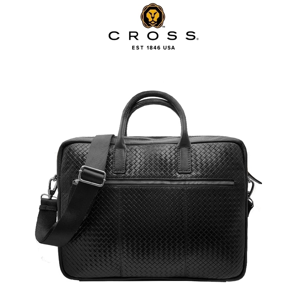 【CROSS】經典 小牛皮 編織紋手柄 拉鍊 手提 斜背 公事包 (16吋 黑色)限量1折 全新 專櫃 展示品