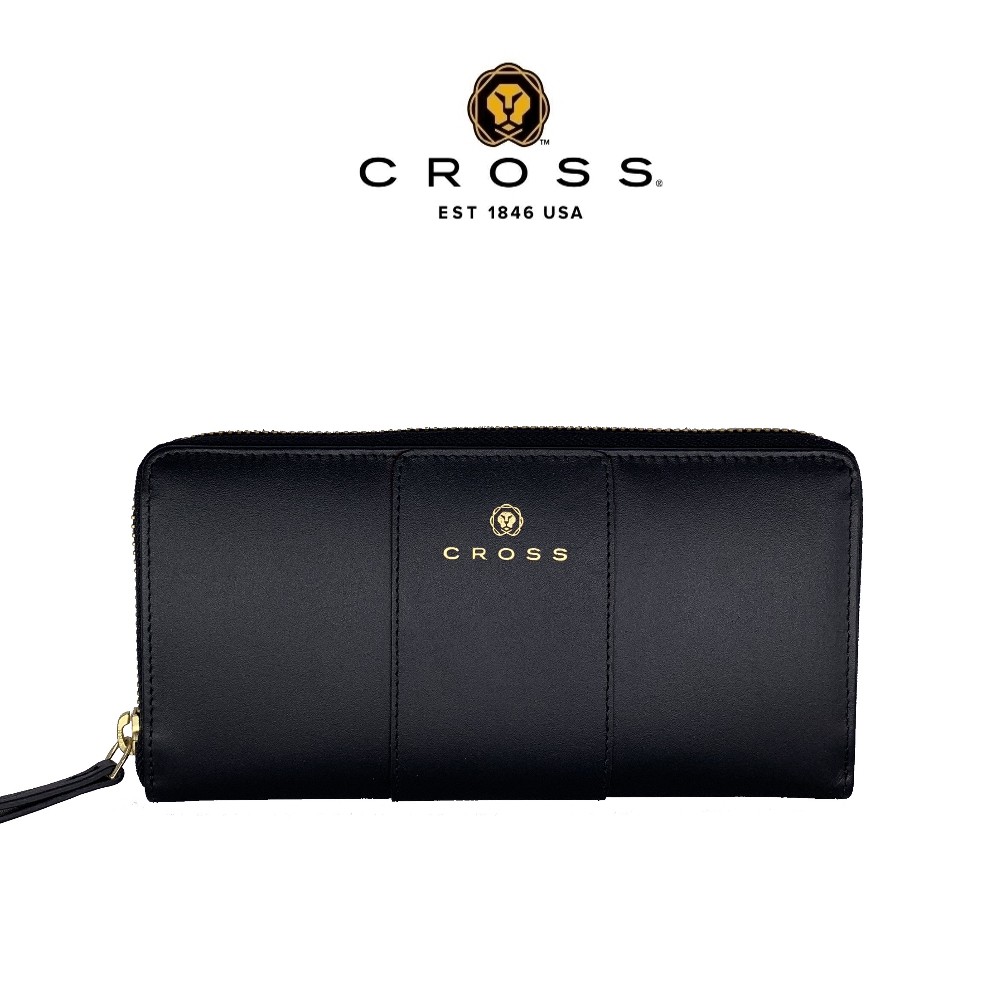 【CROSS】賈姬限定款 頂級 植鞣 NAPPA 小牛皮 拉鍊長夾 長夾(黑色)
