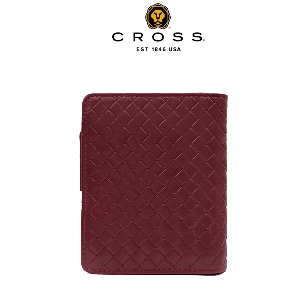 【CROSS】頂級編織紋NAPPA小牛皮拉鍊短夾阿梅爾系列 (酒紅色)