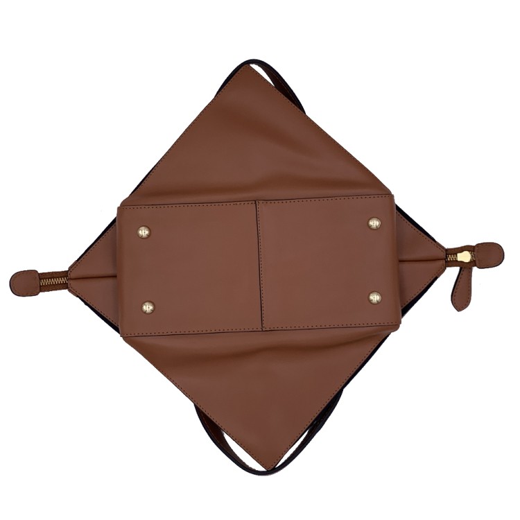 【CROSS】紅點大獎 頂級 頭層 牛皮 幾何 托特包 (咖啡色)