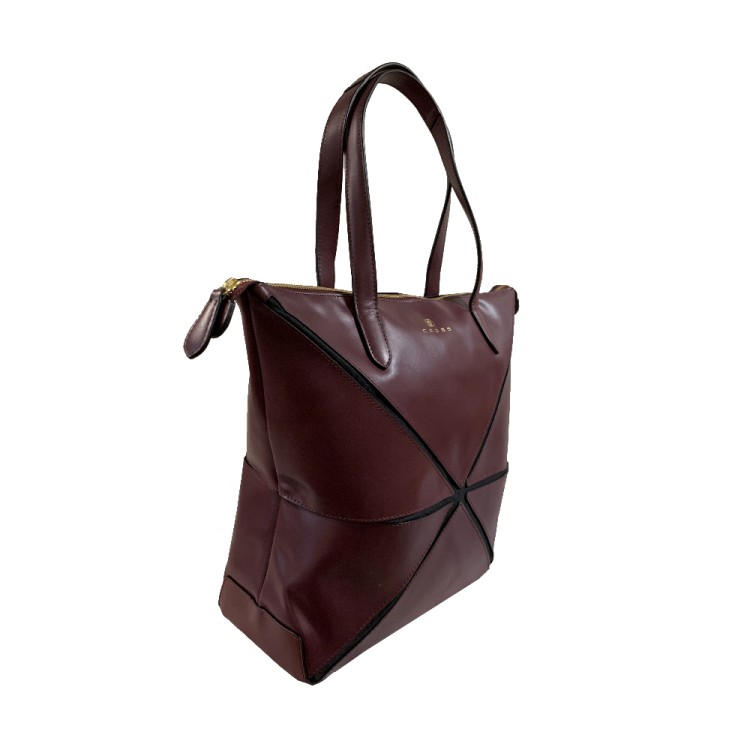 【CROSS】紅點大獎 頂級 頭層牛皮 幾何 托特包 (酒紅色 全新 專櫃 展示品)[限量1折]