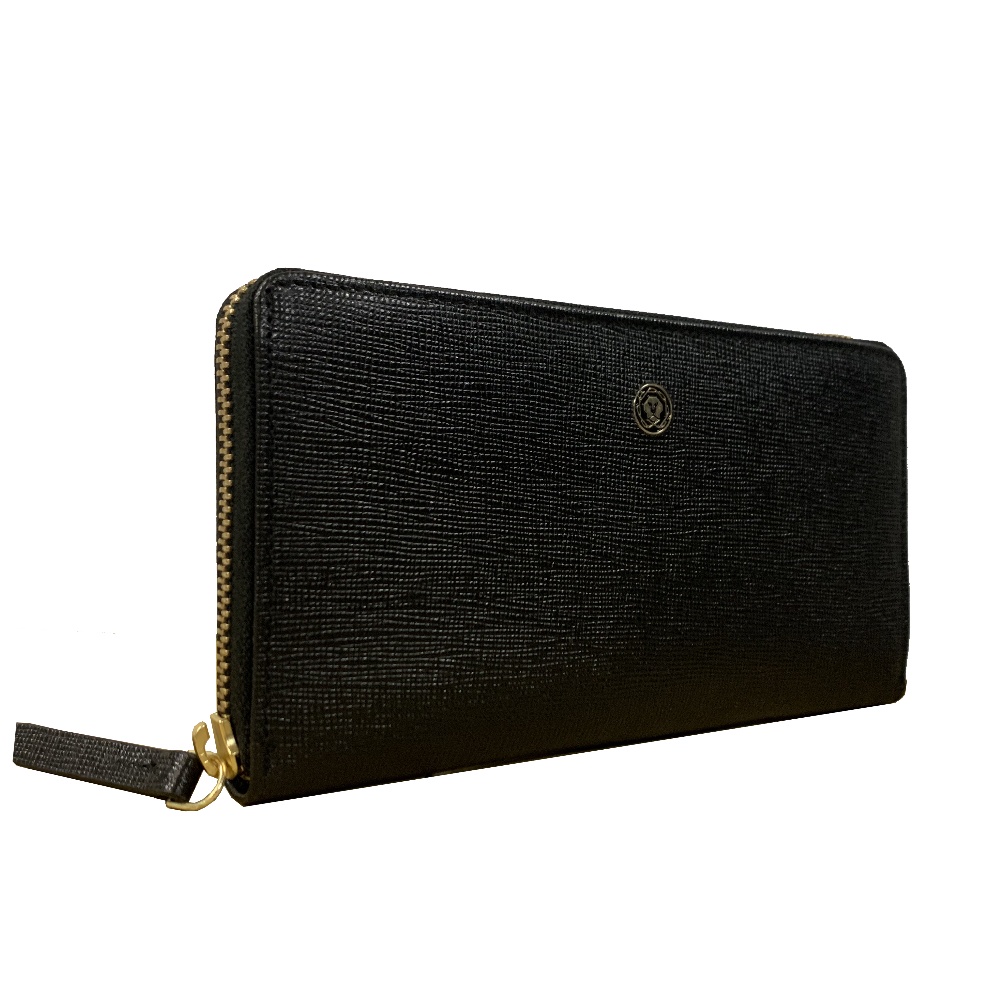【CROSS】頂級 NAPPA 小牛皮 十字紋 拉鍊長夾 長夾 附高貴 送禮 提袋 (黑色)