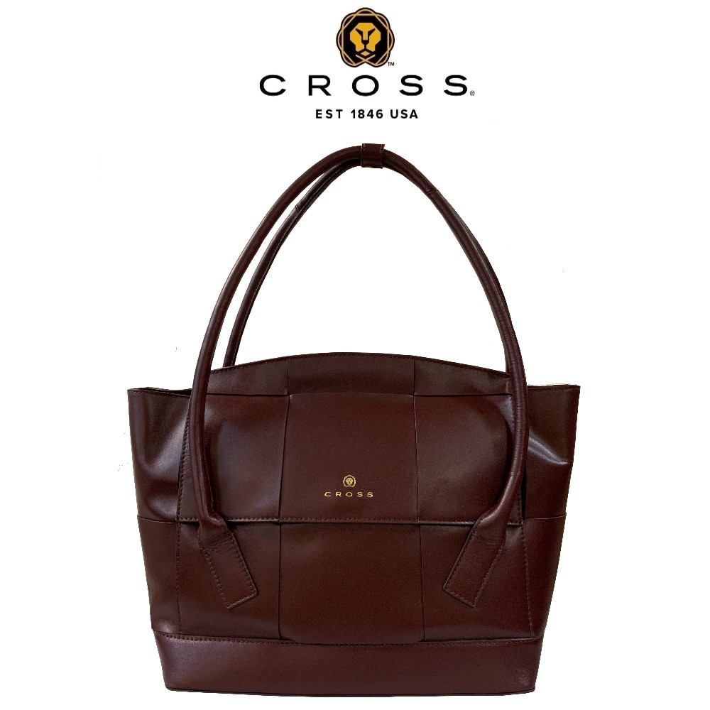 【CROSS】經典 小牛皮 編織 手提大包 托特包(酒紅色 全新 專櫃 展示品)【限量1折 】