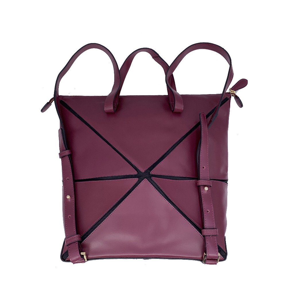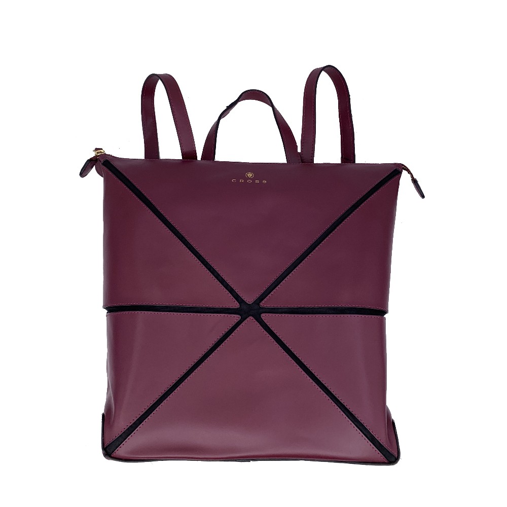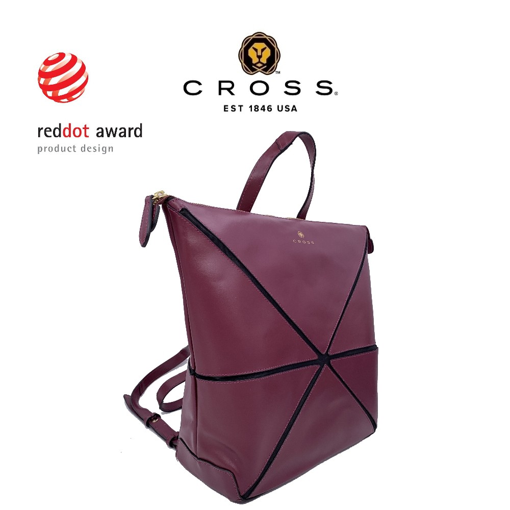 【CROSS】紅點大獎 頂級 頭層 牛皮 幾何 後背包(酒紅色)