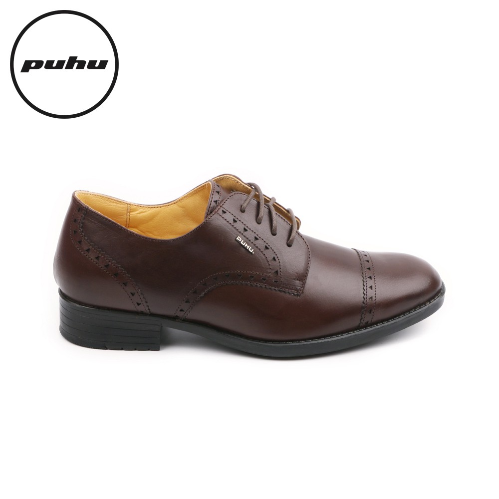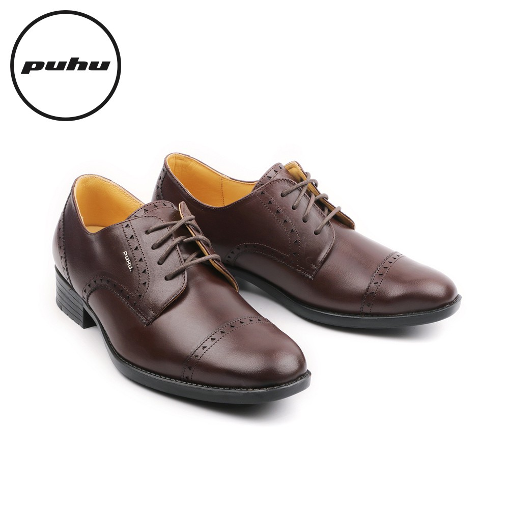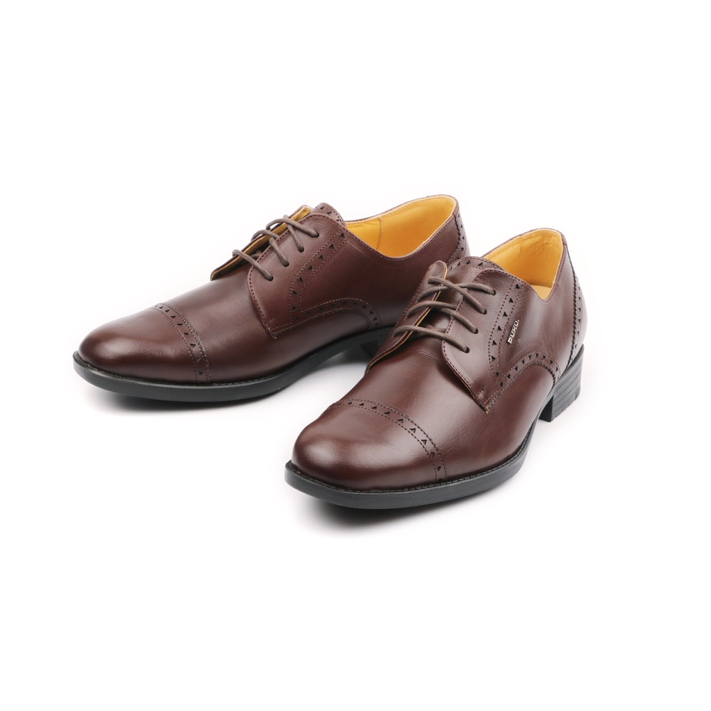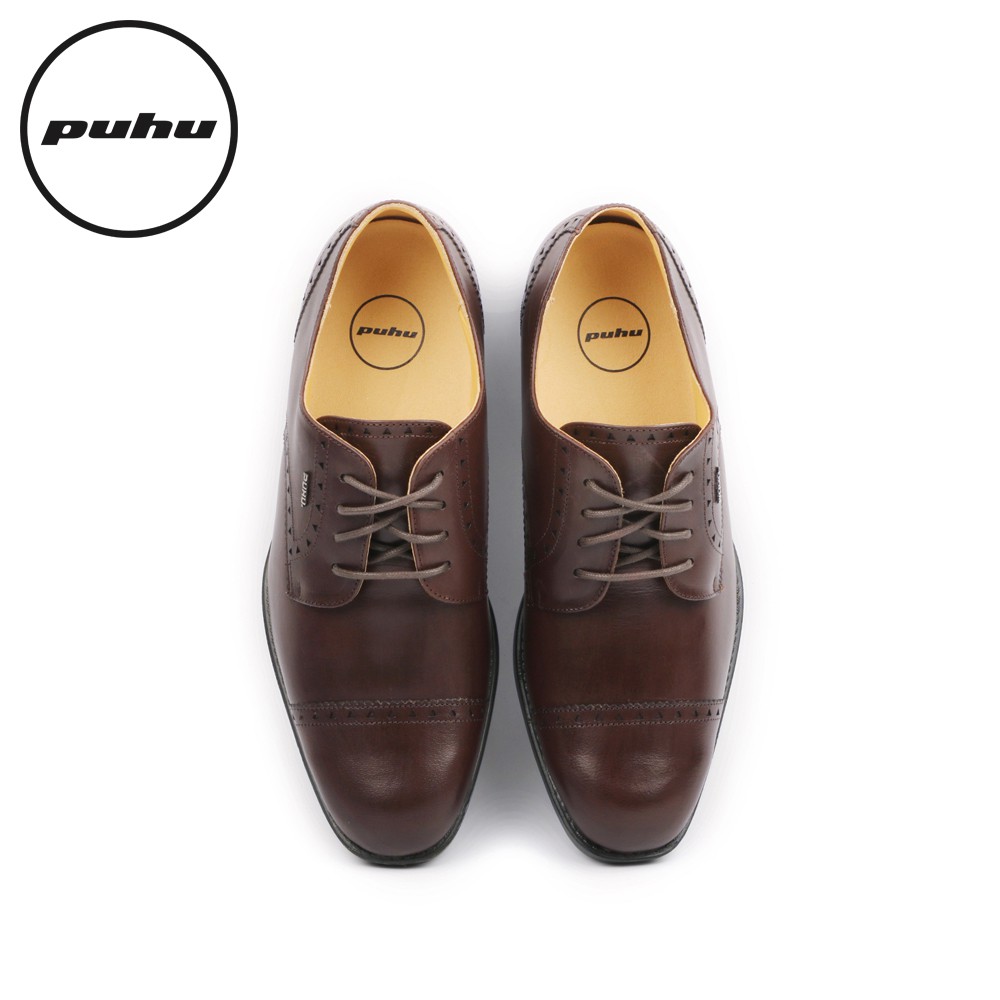 【PUHU彪琥 手工全牛皮三角雕花輕量紳仕皮鞋-深咖】100%MIT 紳士鞋 皮鞋 德比鞋 上班族 業務 西裝 男士婚鞋