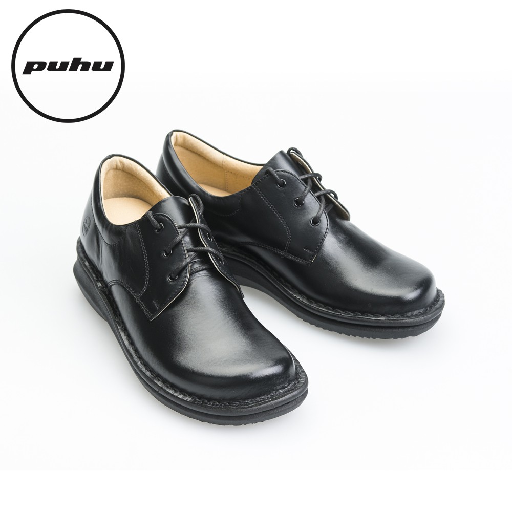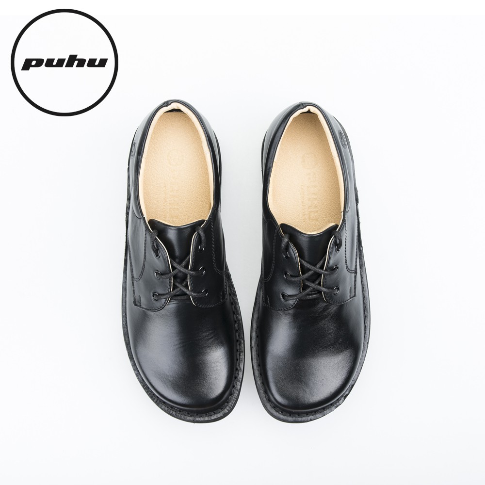 【PUHU彪琥 牛皮綁帶學生鞋-女款黑】MIT 女皮鞋 學生鞋 綁帶皮鞋 寬楦頭 寬楦皮鞋 女工作鞋 房務人員