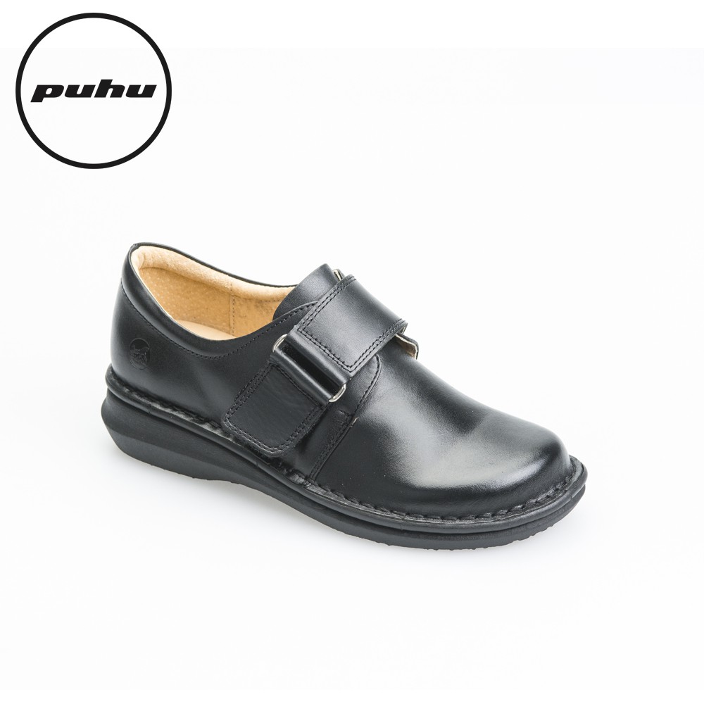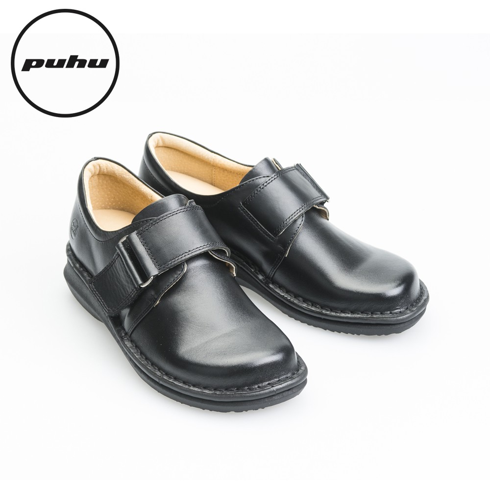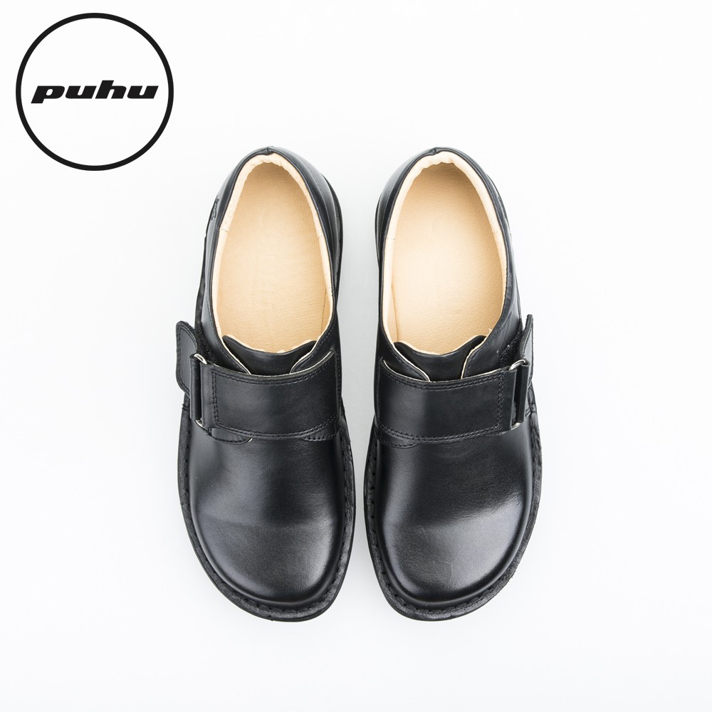 【PUHU彪琥 牛皮黏帶學生鞋-女款黑】MIT 女皮鞋 學生鞋 綁帶皮鞋 寬楦頭 寬楦皮鞋 女工作鞋 房務人員