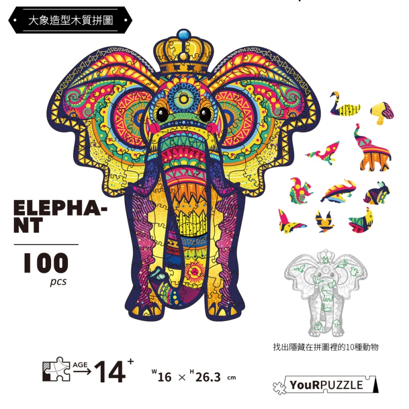 YouRPuzzle拼圖 台灣現貨 大象拼圖 檢驗合格木質動物拼圖 不規則木製拼圖 精美設計外盒