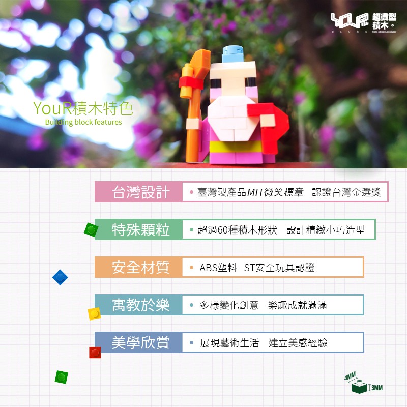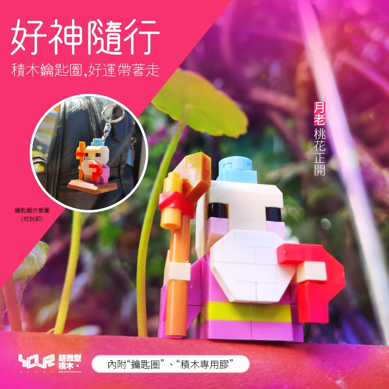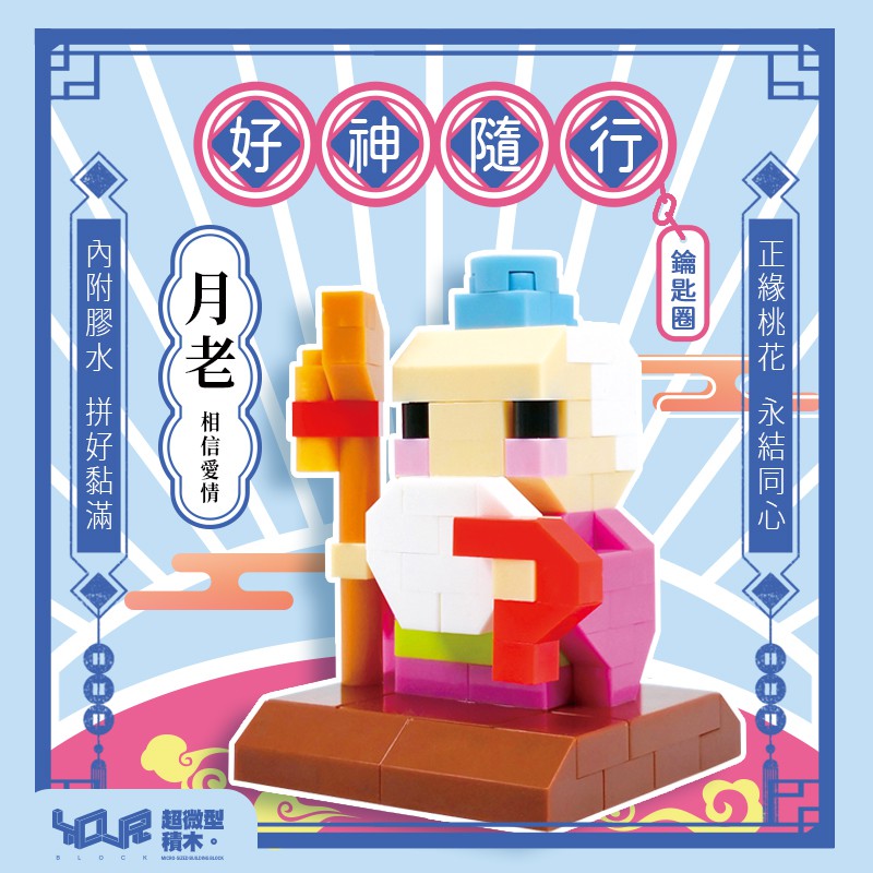 YouRblock微型積木-好神隨行-月老-積木鑰匙圈-附膠水-積木客制化-創意設計-MIT