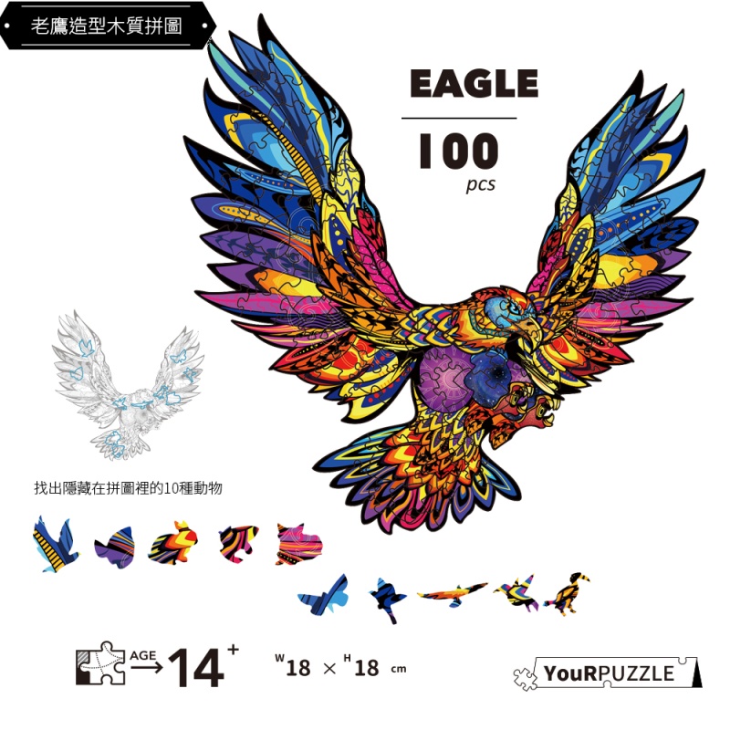 YouRPuzzle拼圖 台灣現貨 老鷹拼圖 檢驗合格木質動物拼圖 不規則木製拼圖 精美設計外盒