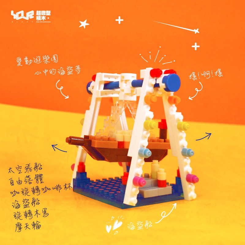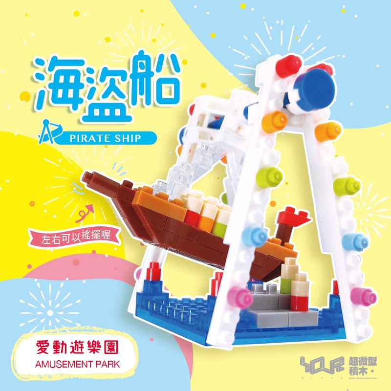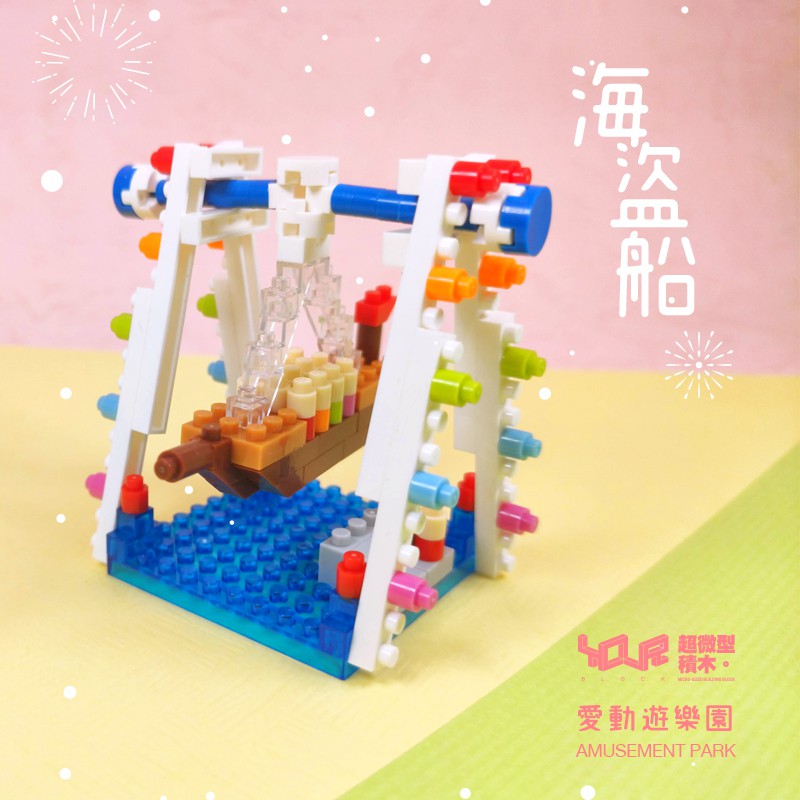 YouRblock微型積木-海盜船-MIT積木客制化-左右擺盪乘風破浪-愛動遊樂園附膠水