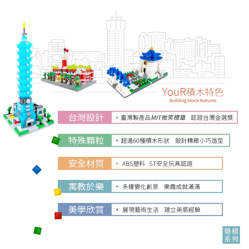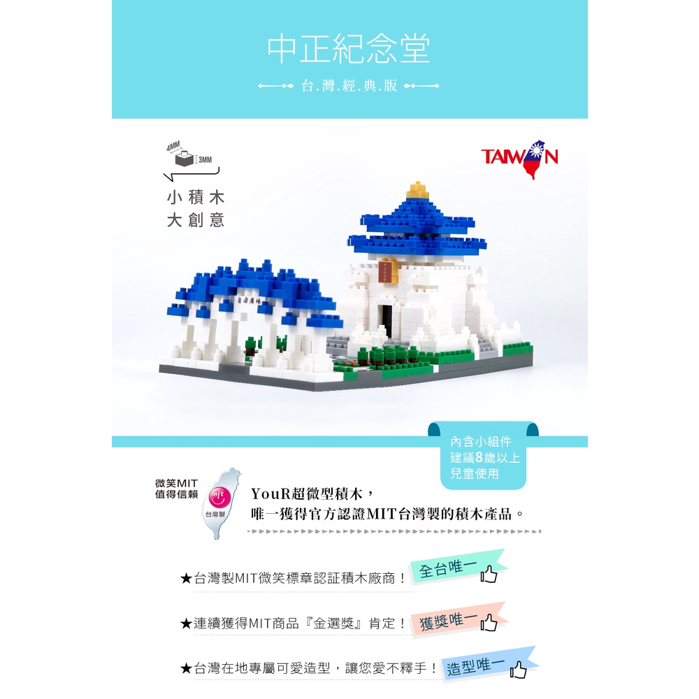 YouRblock微型積木-台灣經典建築。中正紀念堂-最佳伴手禮-MIT製造-自由廣場牌樓-精緻客製化