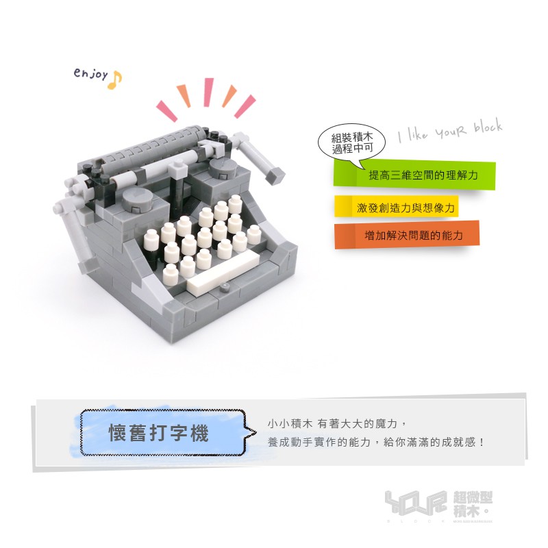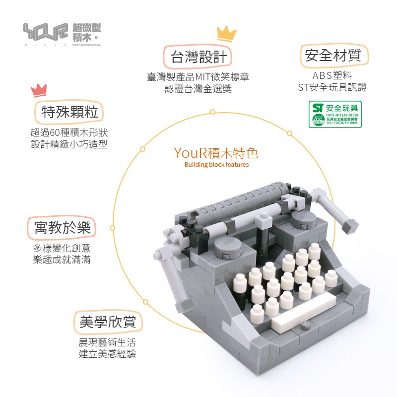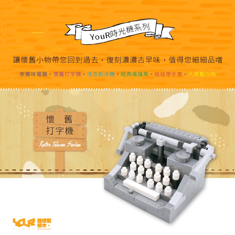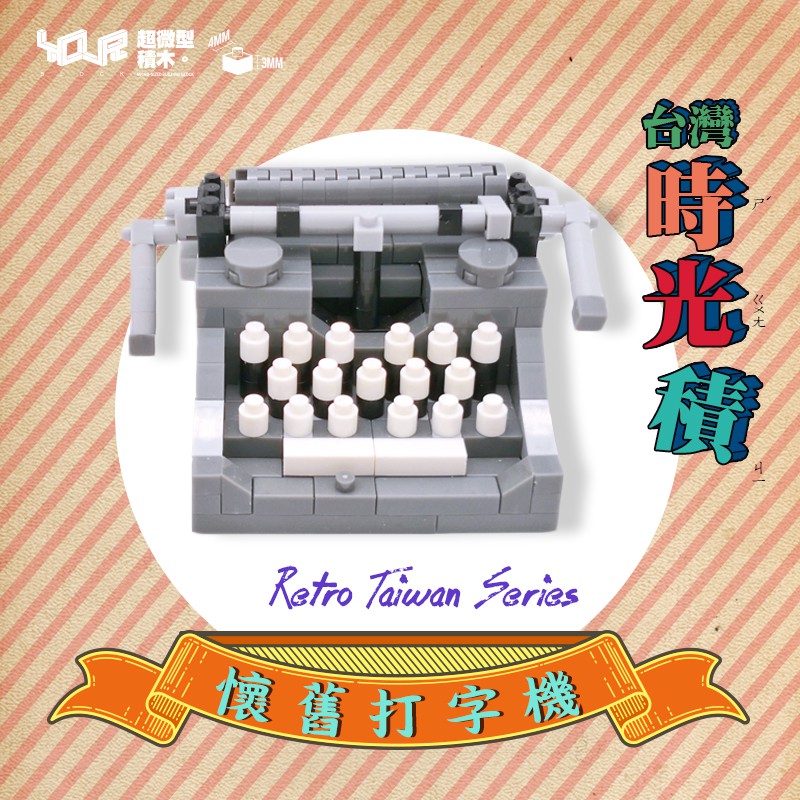 YouRblock微型積木-台灣時光積-復古打字機-懷舊經典設計-特色文創舒壓療癒-積木客制化-禮物-MIT