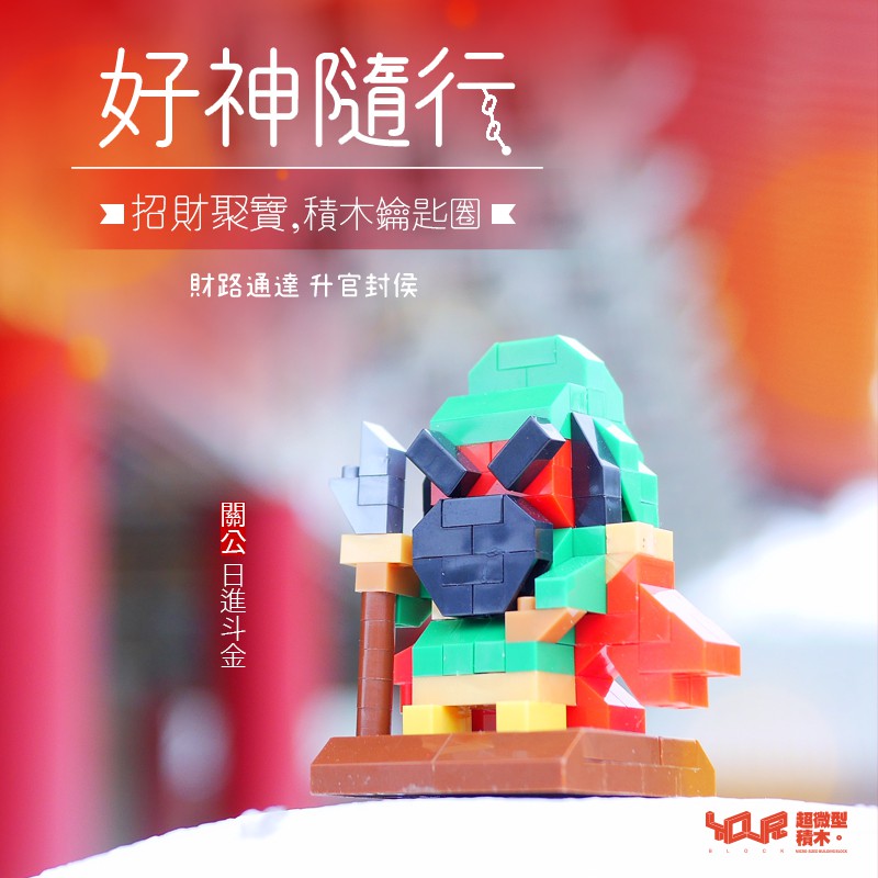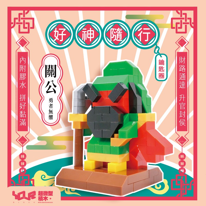 YouRblock微型積木-好神隨行-關公-積木鑰匙圈-附膠水-積木客制化-創意設計-MIT
