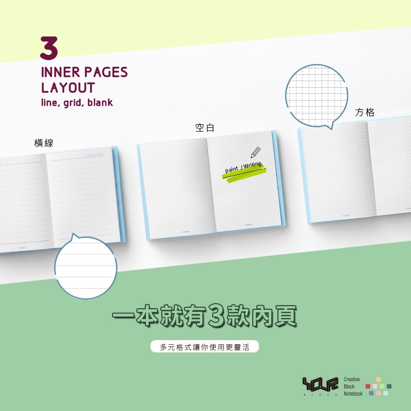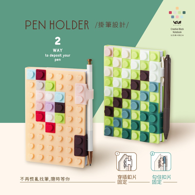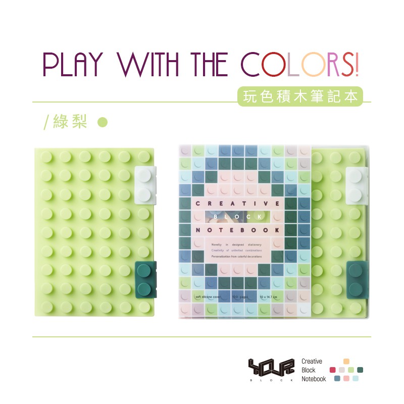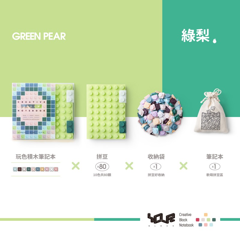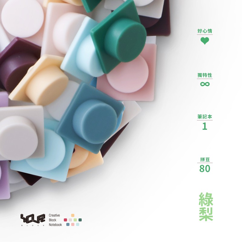 YouRblock微型積木-玩色創意A6筆記本綠梨-立體紓壓DIY色彩拚豆 文青個性記事本