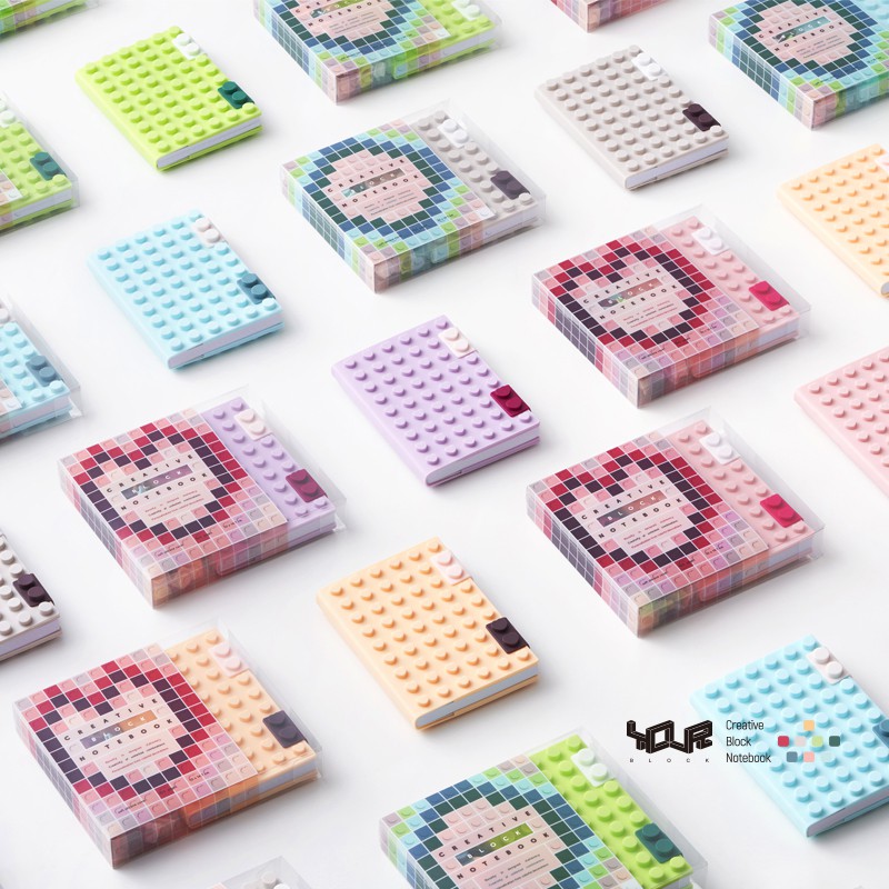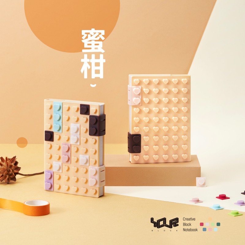 YouRblock微型積木-玩色創意A6筆記本蜜柑-立體紓壓DIY色彩拚豆 文青個性記事本