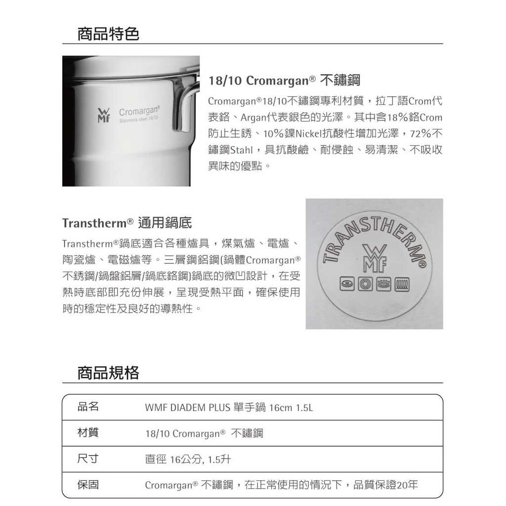 【德國WMF】DIADEM PLUS 單手鍋(16CM)1.5L