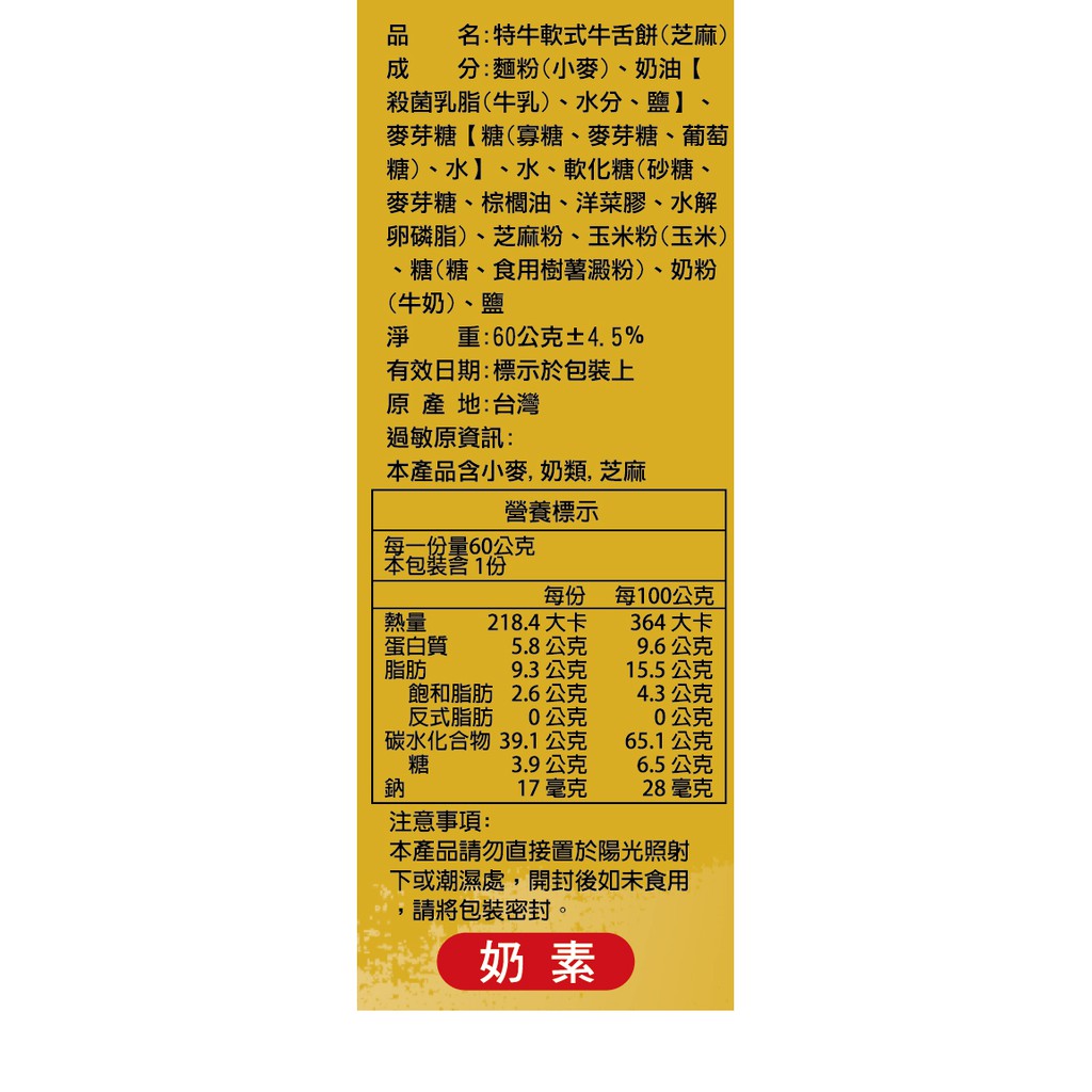 宜蘭餅-軟式牛舌餅 原味 黑糖 芝麻 金桔 / 60g/包