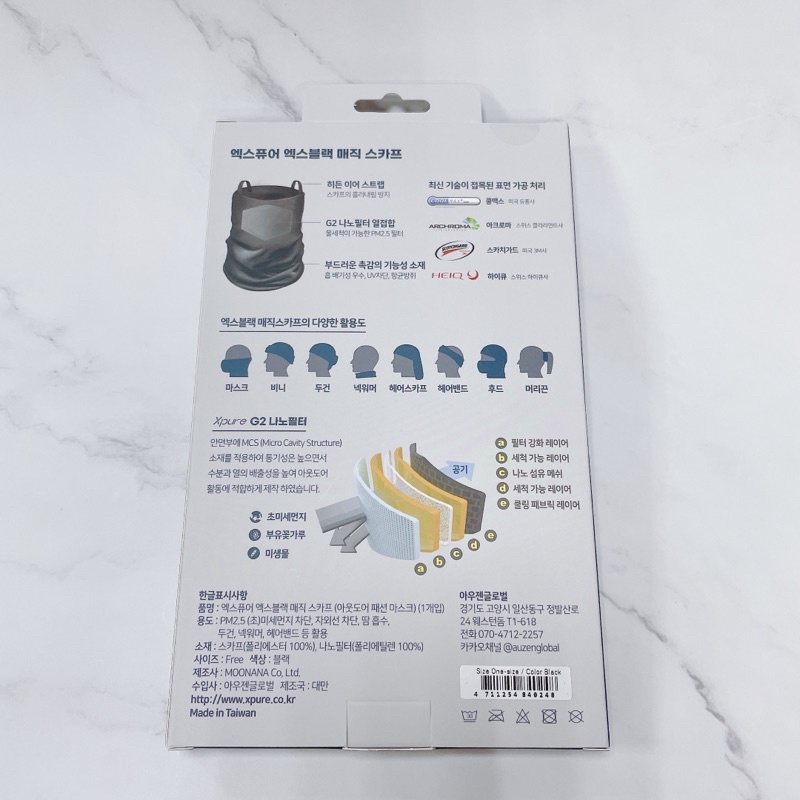 Xpure淨對流 (韓文包裝) 抗霾布織口罩BEAUTY / ALL FIT / 極黑款頭巾