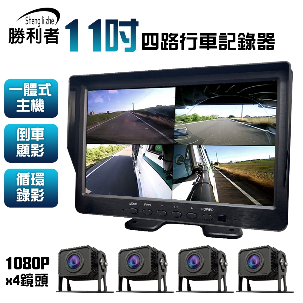 【勝利者】一體式主機 全景四路行車紀錄器11吋屏 視野輔助系統/貨車/連結車/大卡車/吊車專用 [贈64G]