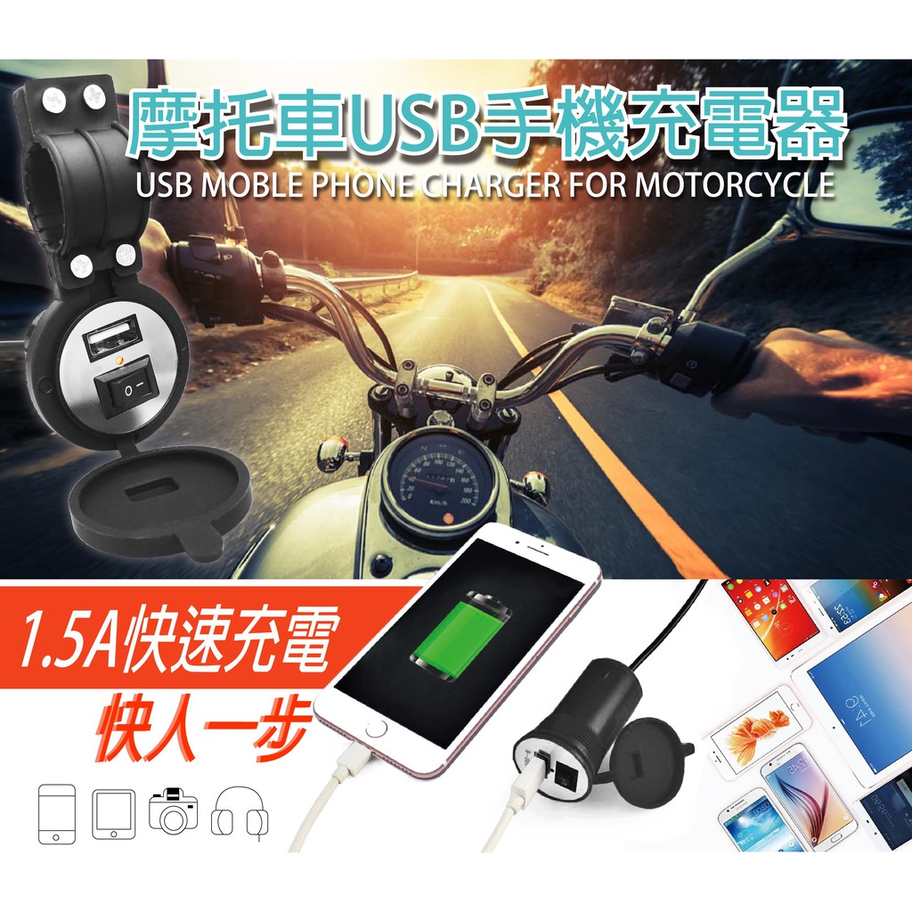 【勝利者】機車USB開關充電孔 免鑽孔 5V1.5A快速充電 騎機車不怕手機沒電
