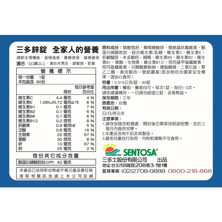 三多 鋅錠90T 礦物鋅/生長發育/生殖機能/調整體質【富康活力藥局】