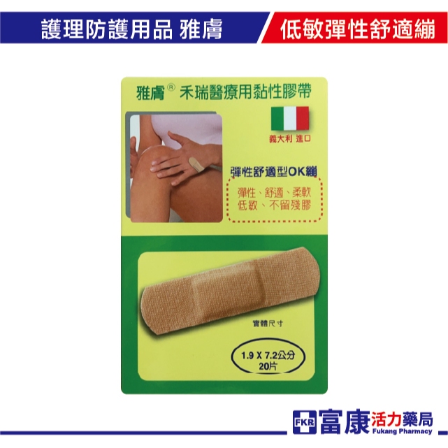 雅膚 低敏彈性舒適型OK繃 (1.9 x 7.2cm) 20片【富康活力藥局】
