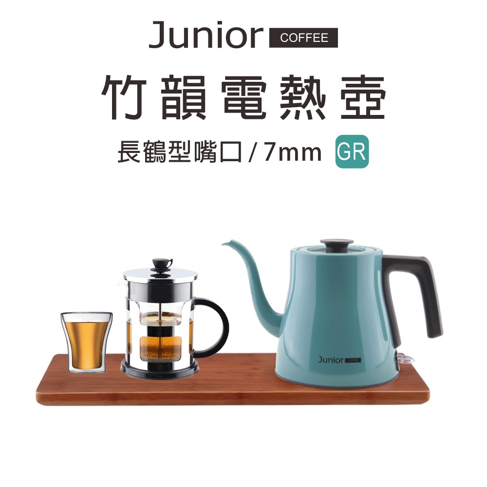 【 喬尼亞咖啡 】竹韻電熱壺 │ 鶴型壺嘴 │ 電熱手沖壺 │ 琺瑯綠 (附竹盤)