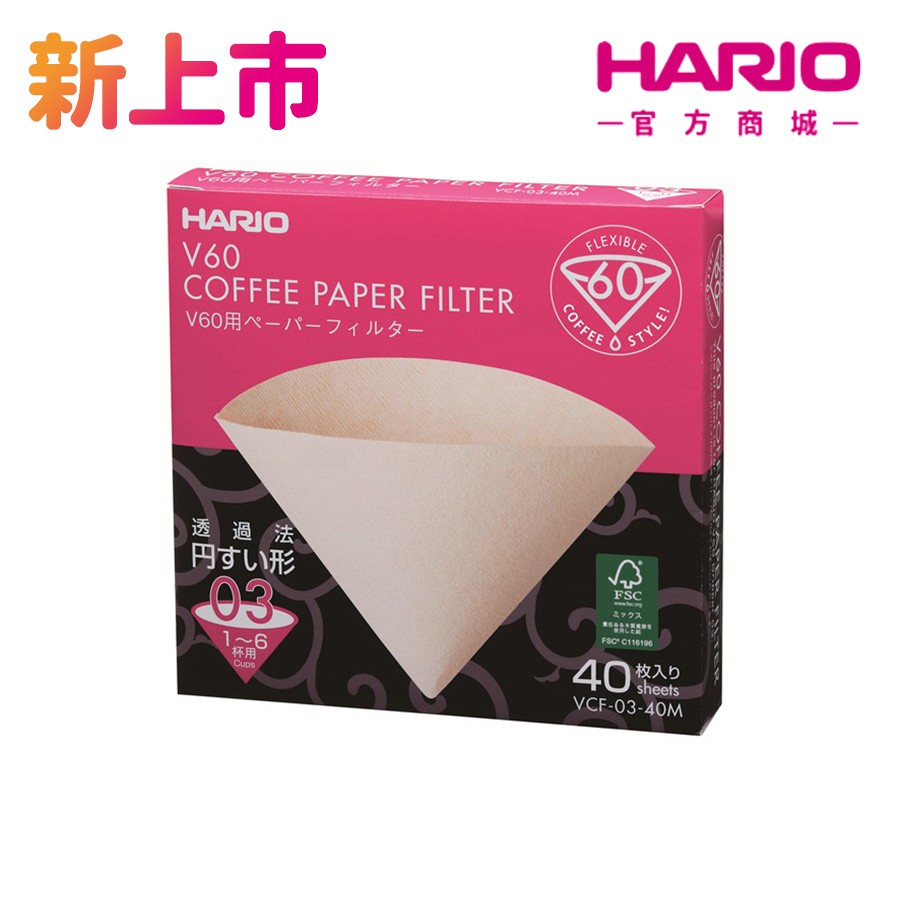 【HARIO】V60濾紙-03無漂白/純白/盒裝 VCF-03-100M/100W/40M 【HARIO】