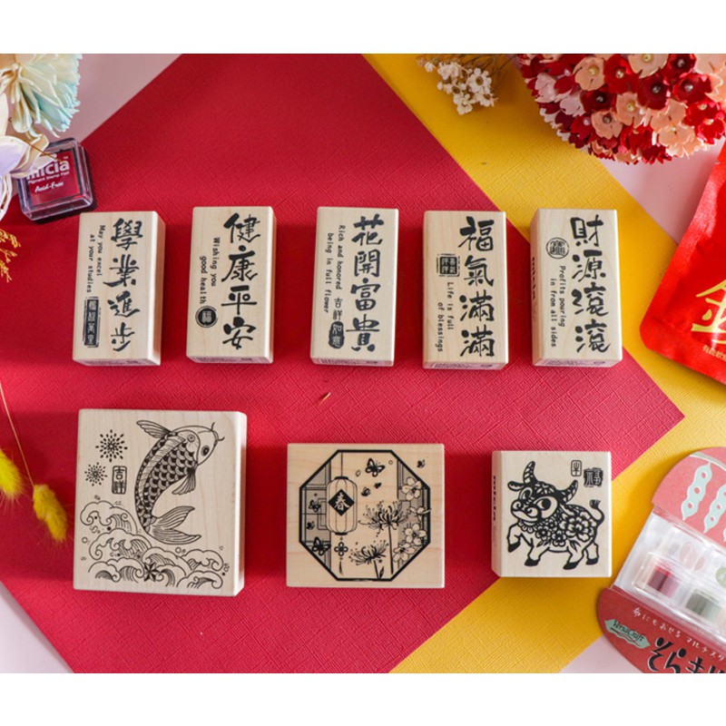 【 Micia 美日手藝館 】楓木印章套組-福氣滿滿迎新年 P392