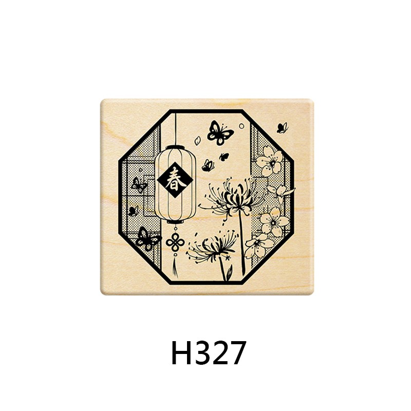 Micia 楓木印章-P392福氣滿滿迎新年 中國花窗背景 H327