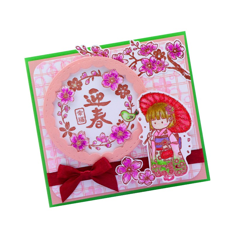 Micia 楓木印章-P375花漾迎新年-迎春 花圈(H311)