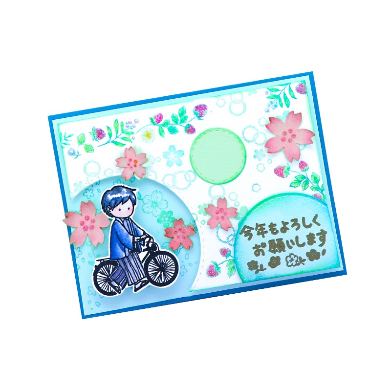 Micia 楓木印章-P375花漾迎新年-今年也請多多指教 日文祝福(E387)