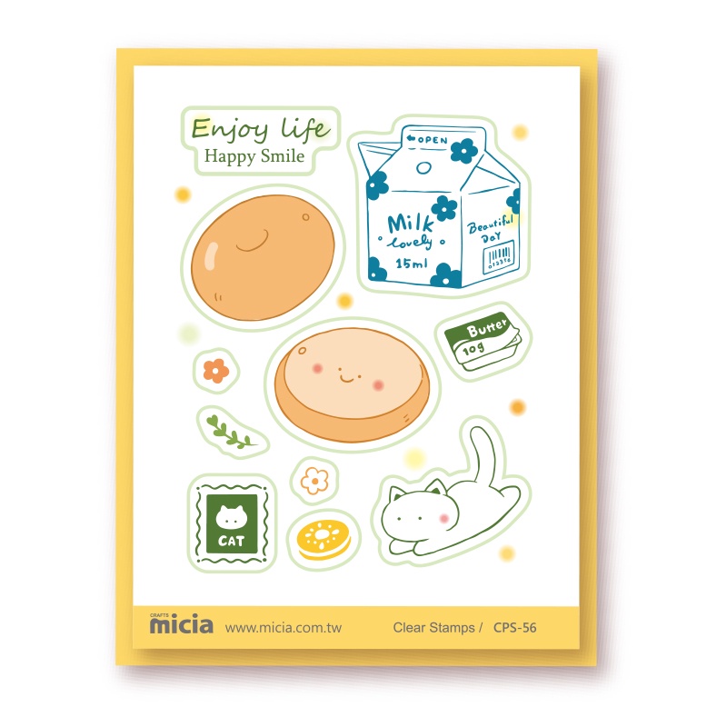 【 Micia 美日手藝館 】透明印章-早餐系列 貓貓貝果加牛奶 CPS-56