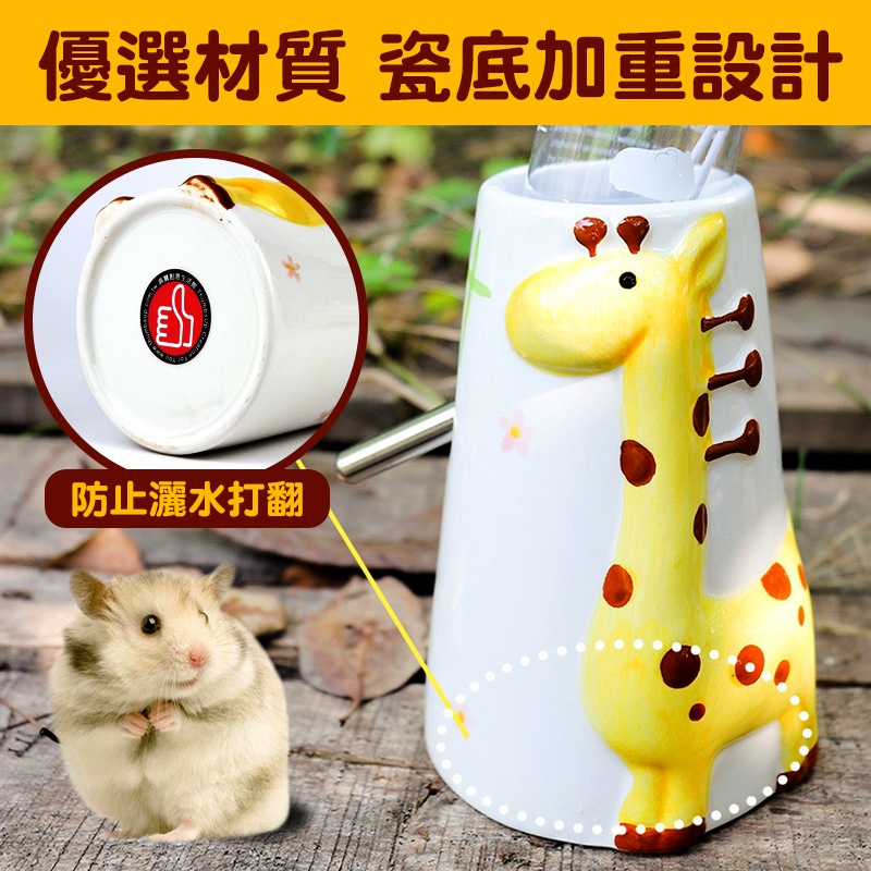 小寵長頸鹿陶瓷水樽 直立式水樽 水壺支架 可搭滾珠水壺 小寵水樽 天竺鼠兔子倉鼠水樽 整理箱 壓克力籠皆適用 典贊創意