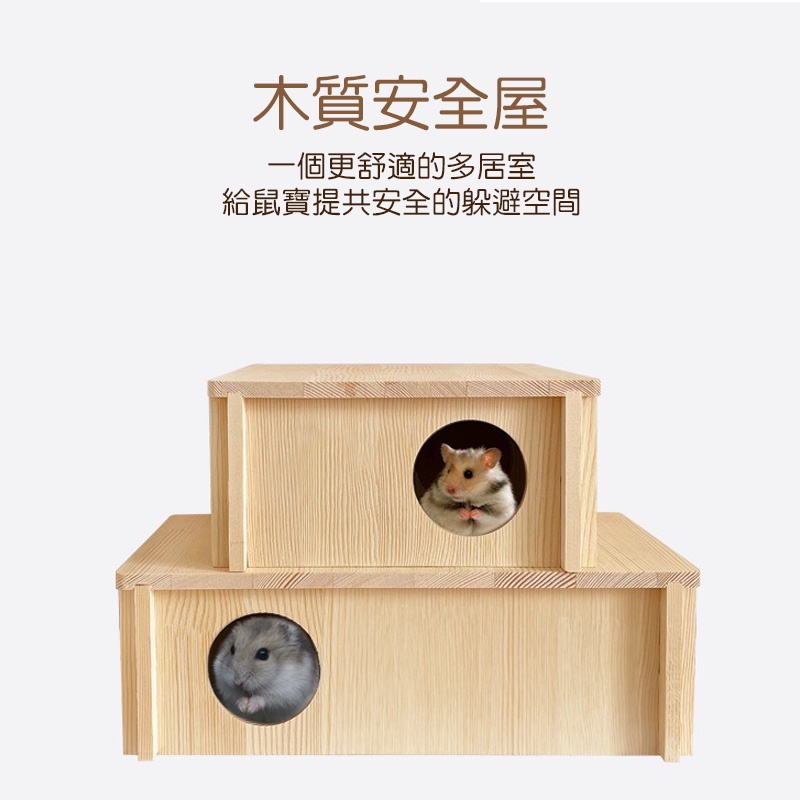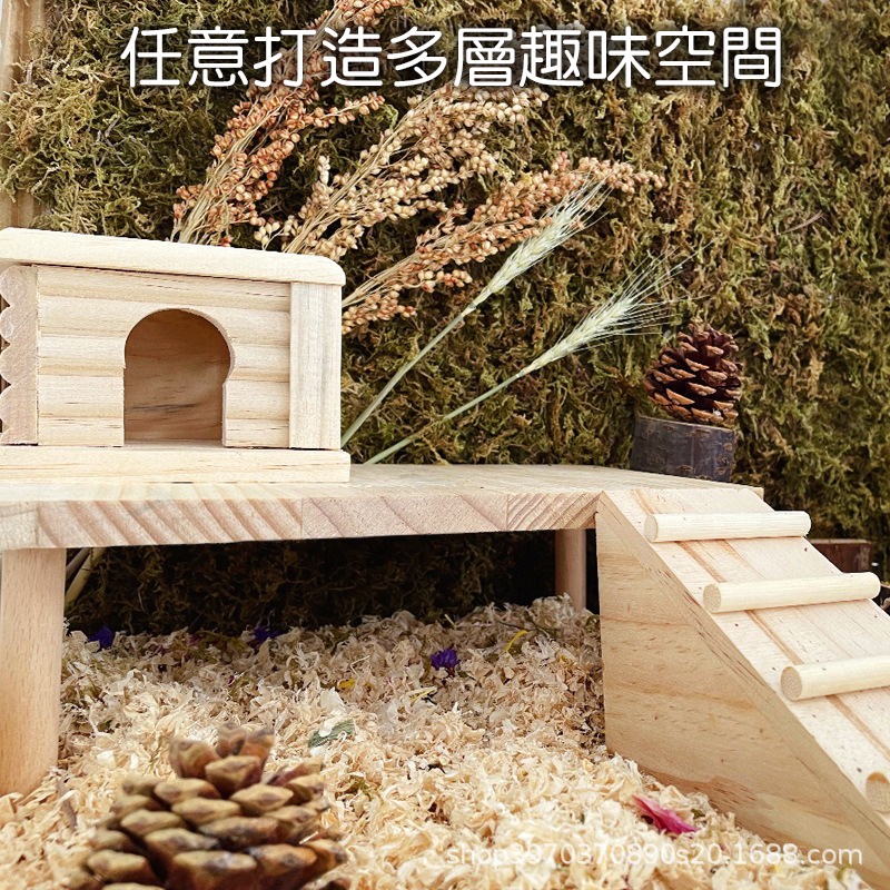 原木正方形倉鼠躲避屋 倉鼠窩 倉鼠木屋 原木三角爬梯 三居室 二居室 長方形 隱蔽屋 倉鼠用品 黃金鼠 典贊創意