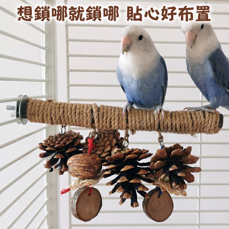 鸚鵡站杆麻繩果木串啃咬玩具 蘋果木松果玉米草編 鸚鵡玩具 鸚鵡用品 鳥用品 鸚鵡玩具 磨牙 鳥玩具 典贊創意