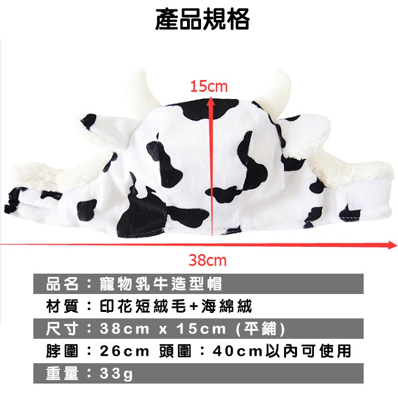 寵物乳牛造型帽 化裝舞會 萬聖節 毛孩帽 乳牛帽 寵物帽 寵物服飾 犬貓兔 寵物用品 狗帽 貓帽 兔帽 典贊創意