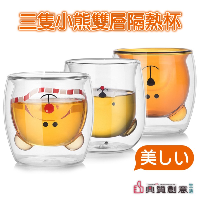 三隻小熊隔熱保冰雙層玻璃杯 咖啡杯 馬克杯 飲料杯 水杯 生日禮物 派對杯 冰沙杯 雙層杯 畢業禮物 聖誕節 典贊創意