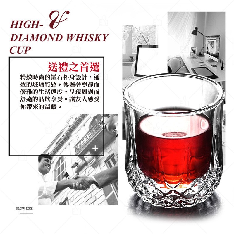 鑽石威士忌雙層玻璃杯 酒杯 雞尾酒 洋酒杯 雕花酒杯 生日禮物 父親節 情人節 鑽石杯 紅酒杯 威士忌杯 冰沙 典贊創意