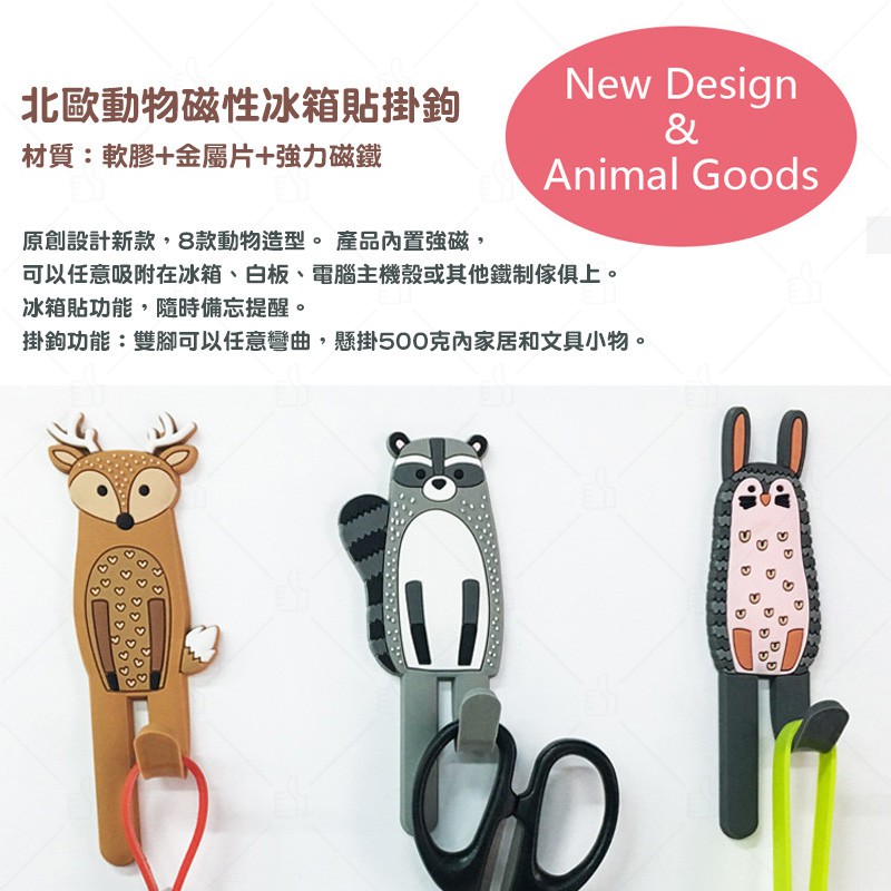 北歐動物磁鐵萬用掛勾 北歐動物磁性冰箱貼掛鈎 文青小物 生日禮物 交換禮物 典贊創意 可愛掛勾 動物掛勾 聖誕禮物