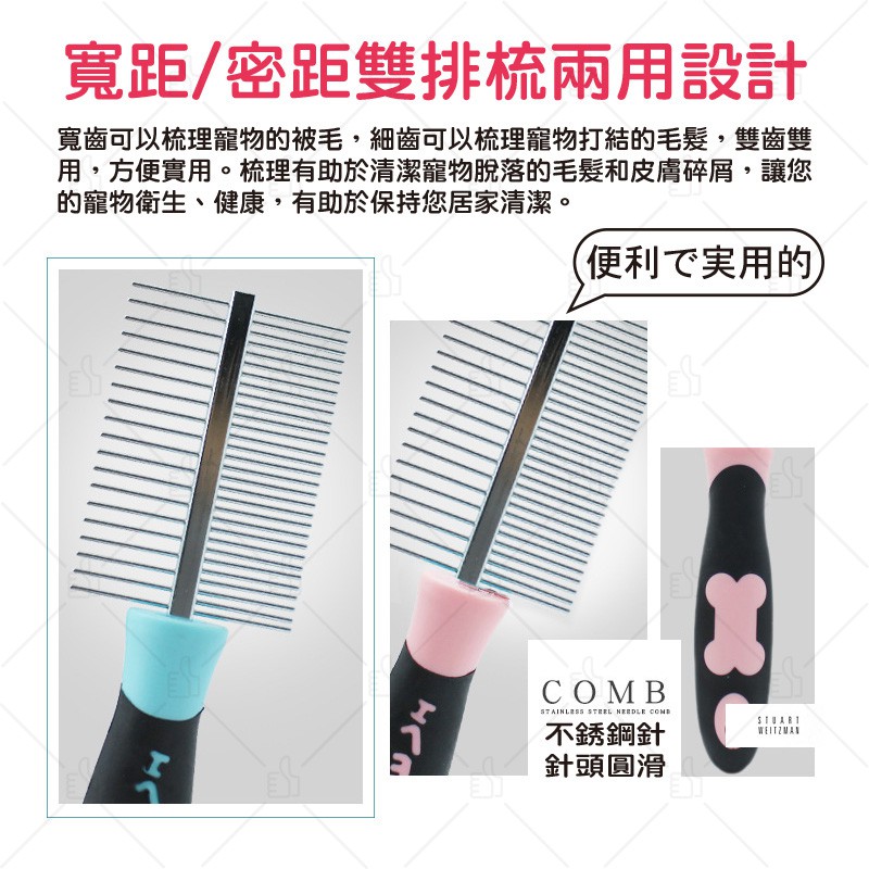寵物雙排不鏽鋼梳 24H出貨 骨頭手柄雙面梳子雙排美容梳 貓狗兔針梳 寵物梳 雙排梳 寵物用品 典贊創意 狗梳貓梳兔梳