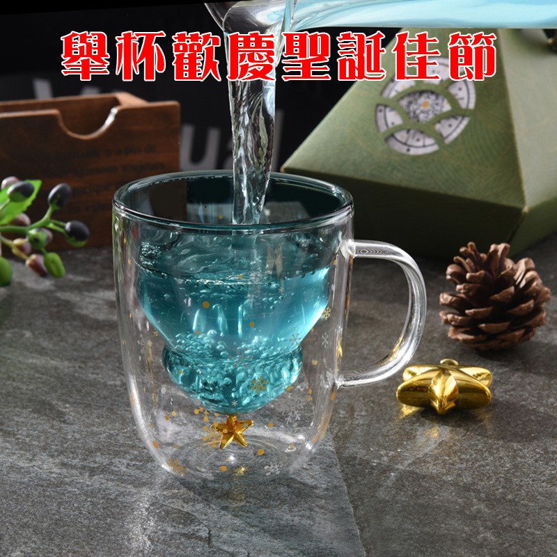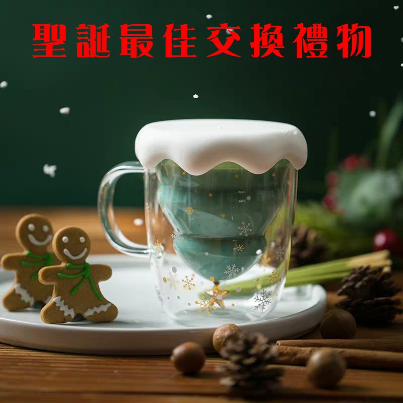 聖誕星願雙層玻璃杯 附白雪杯蓋 250ml 隔熱保冰雙層玻璃杯 心願杯 聖誕節 交換禮物 生日禮物 慶生 典贊創意
