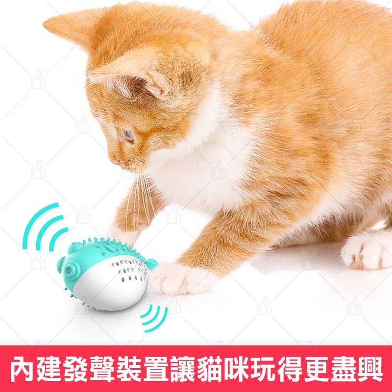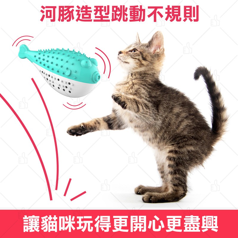 胖河豚多功能貓玩具 貓牙刷 發聲玩具附薄荷球+木天蓼粉 磨牙 潔牙 寵物用品 貓用品 典贊創意 貓咪鈴鐺玩具 24H出貨