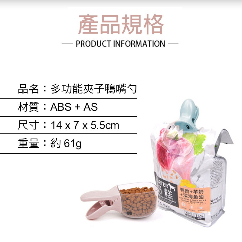 多功能夾子鴨嘴勺 飼料鏟 封口夾 寵物用品 飼料夾 飼料勺 狗用品 貓用品 兔用品 飼料湯匙 典贊創意