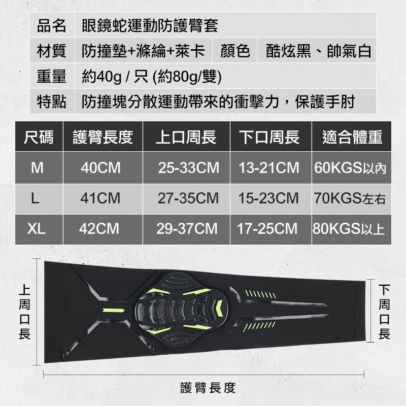 眼鏡蛇運動防護臂套 防撞運動袖套 籃球護臂 打球 運動護具 肘套 男女通用 運動袖套 吸濕排汗 防曬袖套 典贊創意