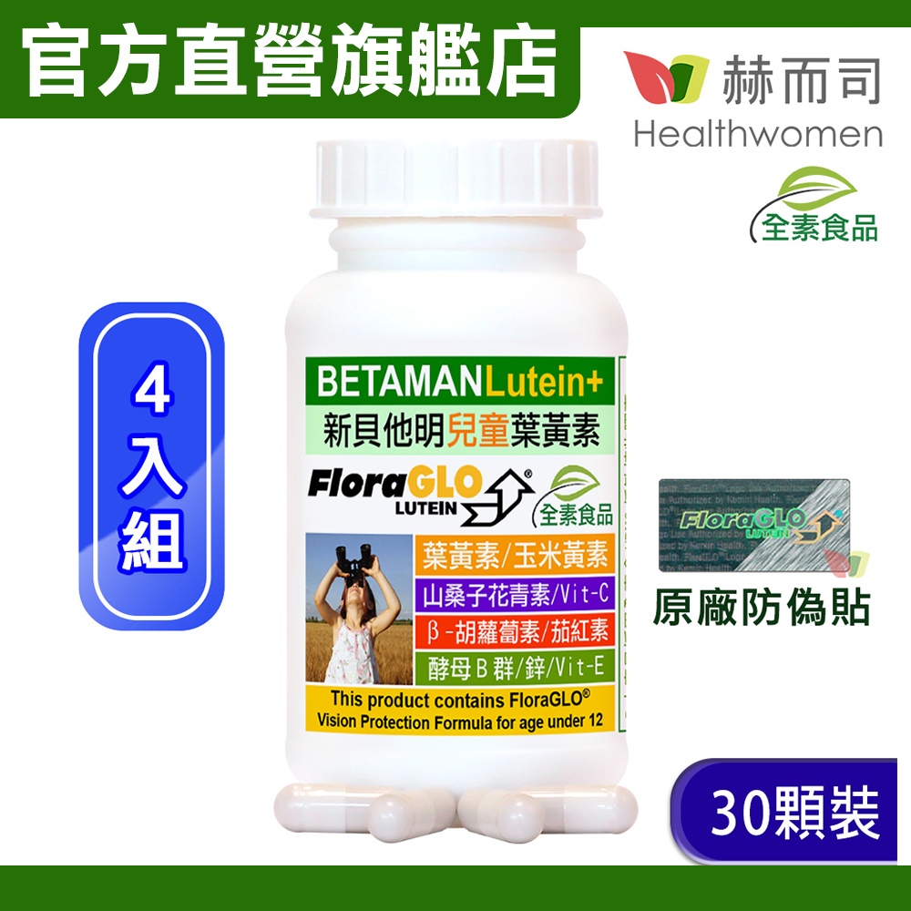 【赫而司】【新貝他明】FloraGLO專利游離型兒童葉黃素16合1綜合維他命全素膠囊(30顆*4罐)【赫而司直營】