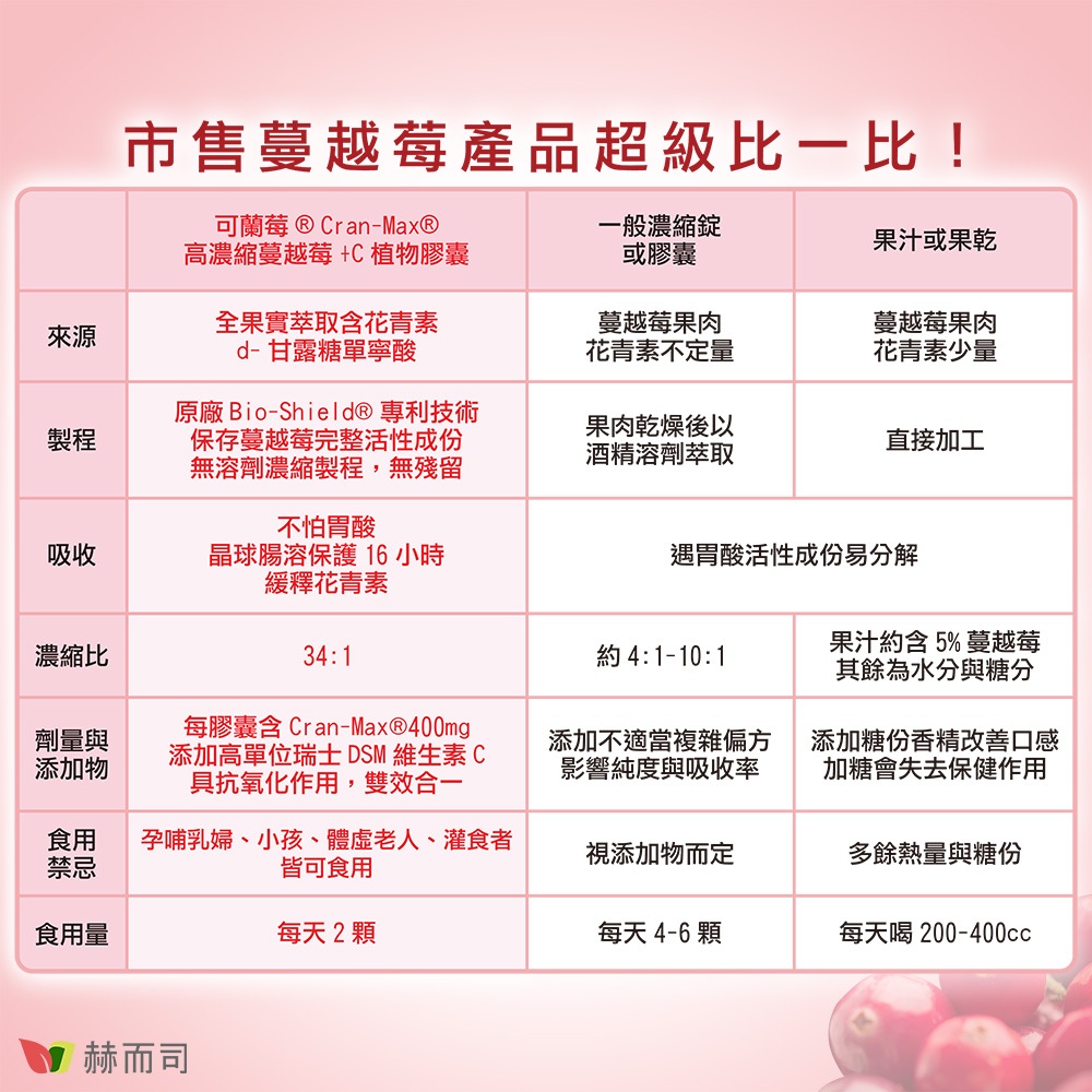 【赫而司】美國專利Cran-Max可蘭莓超濃縮蔓越莓全素食膠囊(60顆*1罐)含A型前花青素,d-甘露糖【赫而司直營】