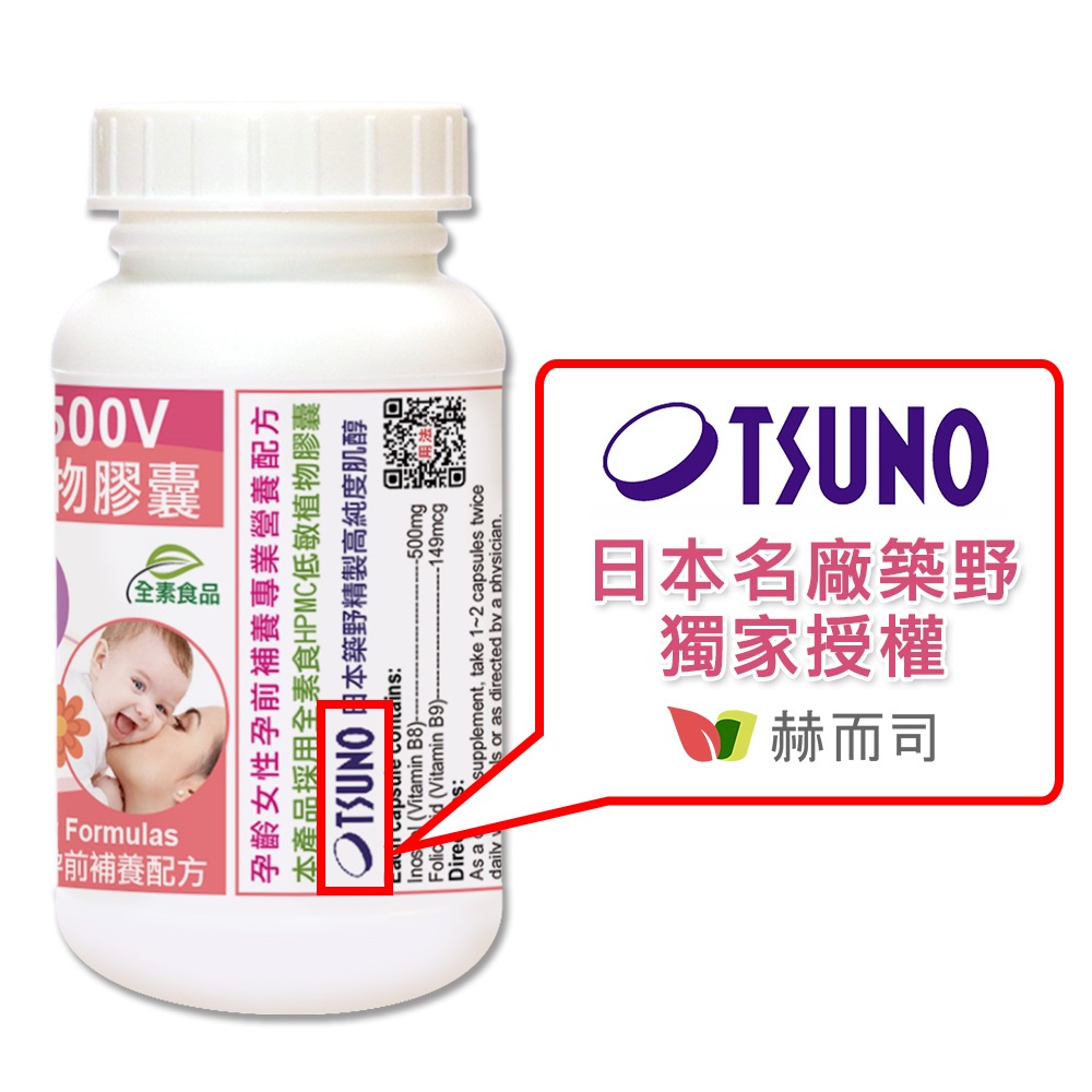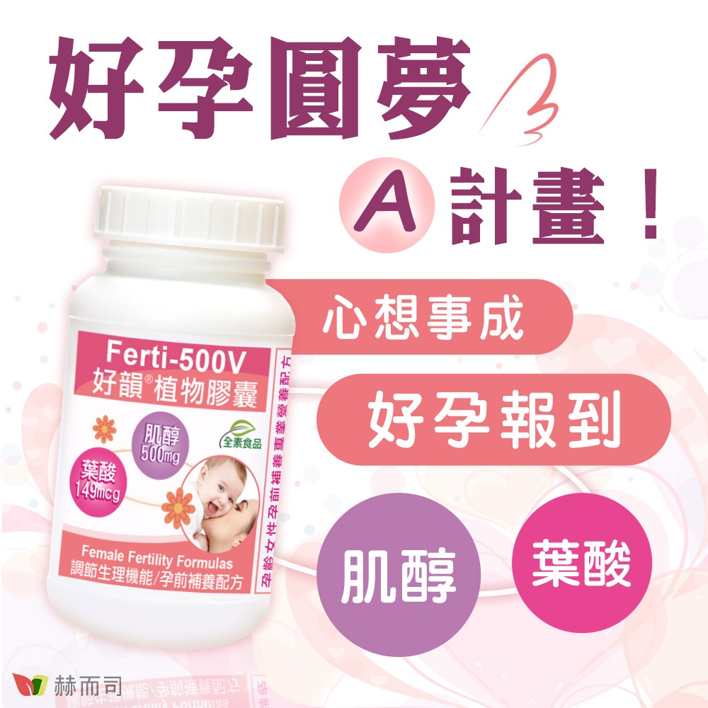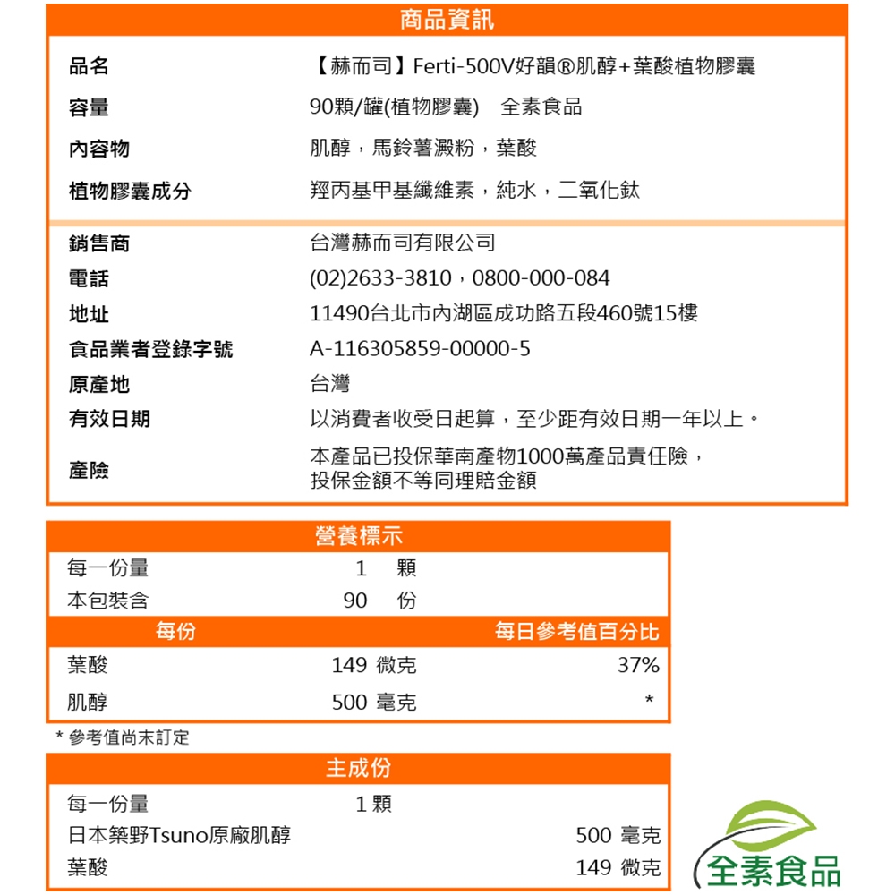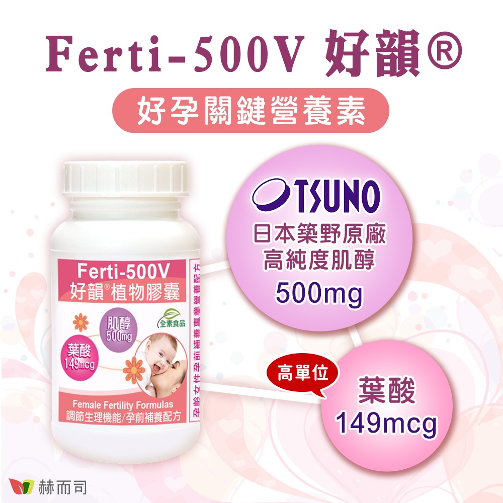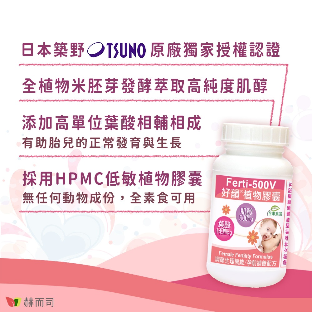 【赫而司】Ferti-500V好韻日本高純度肌醇葉酸全素食膠囊(90顆*1罐)好孕報到女性孕前補養強化配方【赫而司直營】
